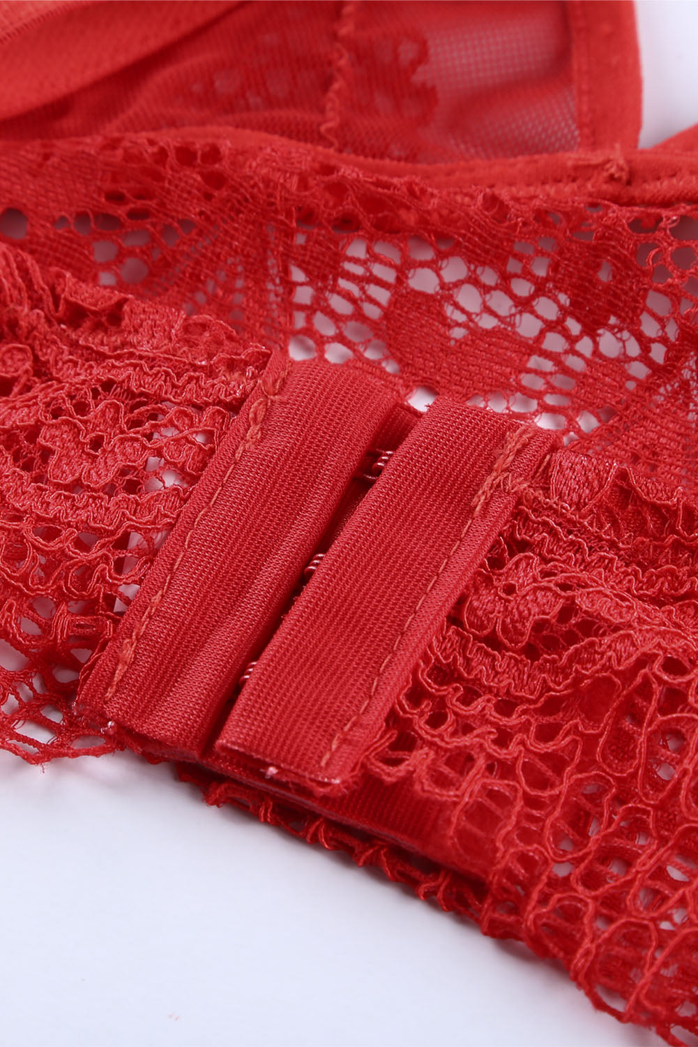 Adjustable straps to ensure a perfect fit. Lace bralette, traingle cups, wide underbust. Hook and eye closure. High Waist panty. Crisscross detail to back.